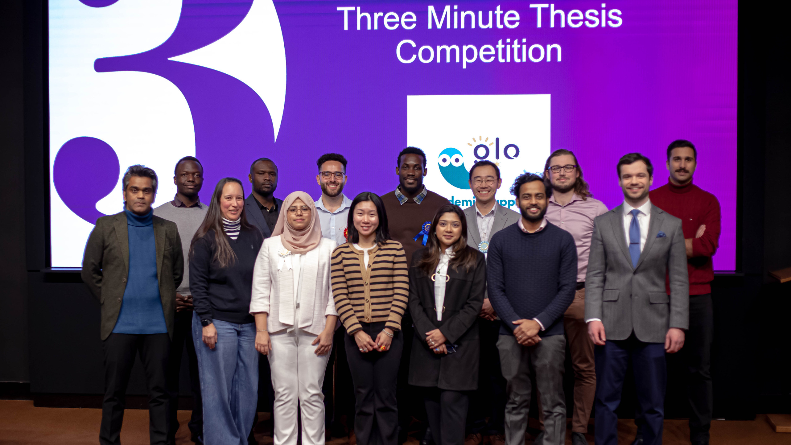 The Three-Minute Thesis Competition (3MT) is an international competition that celebrates the exciting research conducted by graduate students. Developed by The University of Queensland, 3MT cultivates students’ academic, presentation, and research communication skills and supports their capacity to effectively explain their research in three minutes, with one static slide, and in a language appropriate to a non-specialist audience.